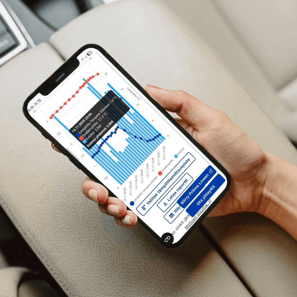 Oiva Onlineen voit tuoda oman lämpötilamittauksen näkymään kulutustietojesi rinnalle. Suosittelemme sisälämpötilan mittaamiseen Shelly Plus H&T Gen3 laitetta, jonka saat kytkettyä palveluun helposti itse. Lämpötilamittaus tai yhden laitteen ohjaus Shelly-älyreleen avulla on Omavoiman asiakkaille maksutonta. Tutkimusten mukaan sisälämpötilan lasku yhdellä asteella tarkoittaa 5% säästöä lämmityskuluissa.